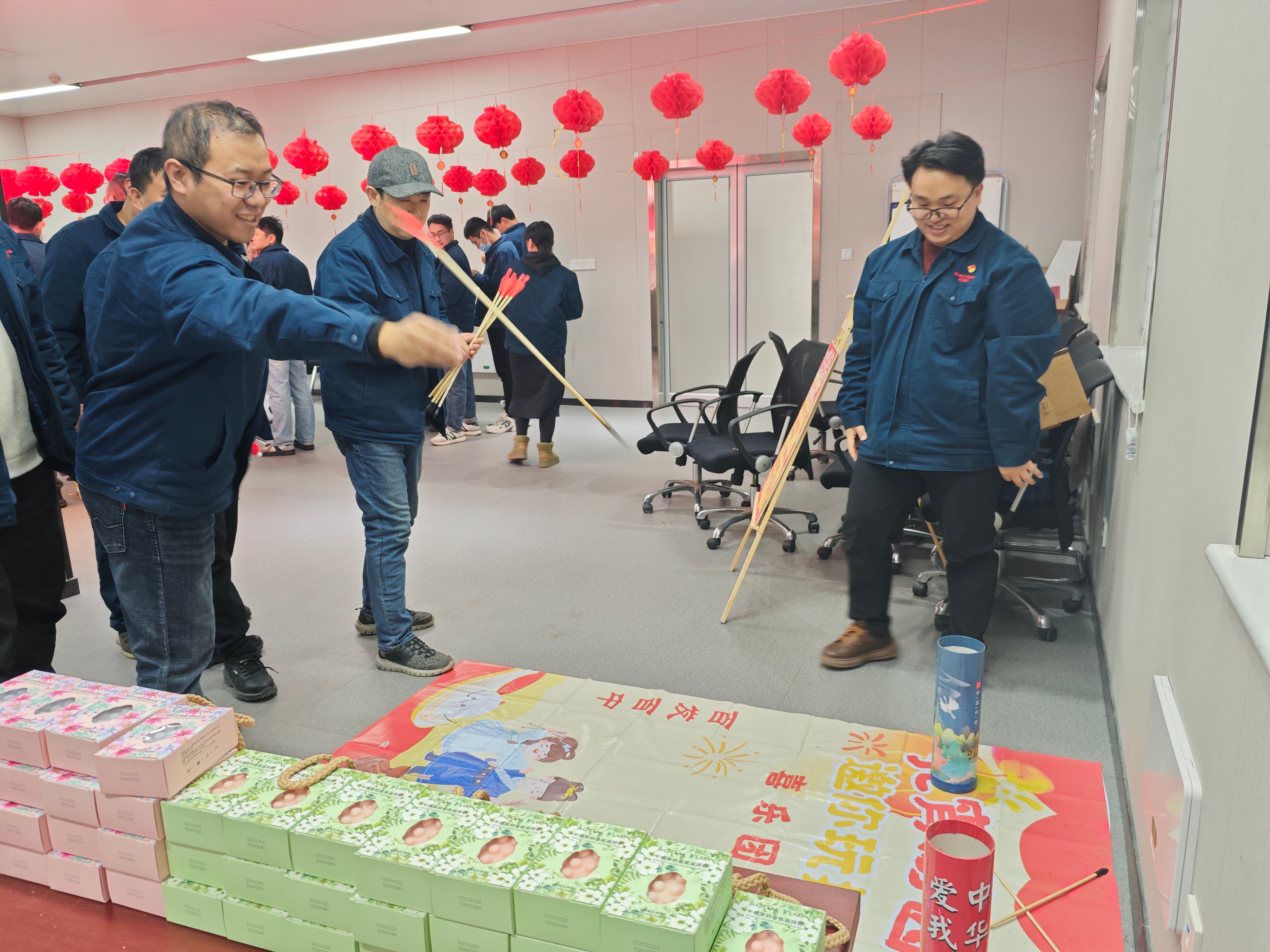 活动现场张灯结彩,年味与暖意交织,处处洋溢着祥和欢乐的氛围。本次活动以传统民俗体验为核心,设置了制作灯笼、猜灯谜、投壶等经典环节,同时搭配幸运大抽奖,兼顾文化性、趣味性与参与感,全方位满足检测中心职工的节日体验需求。